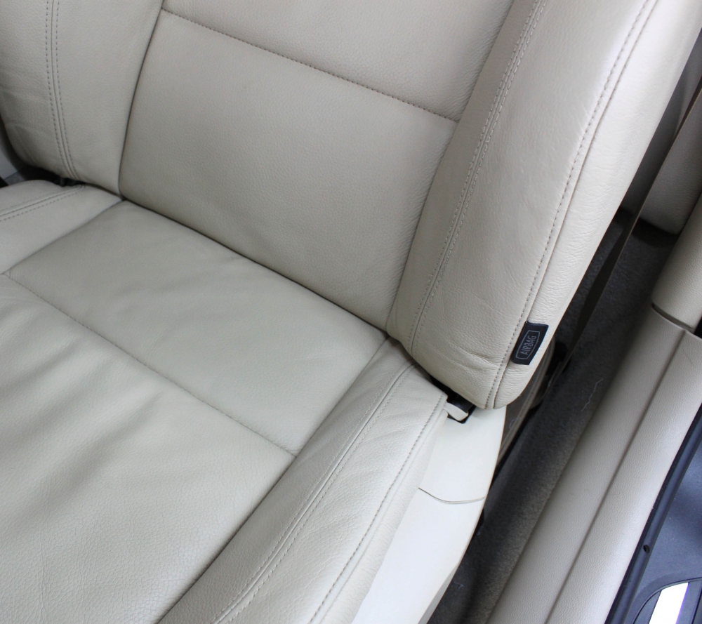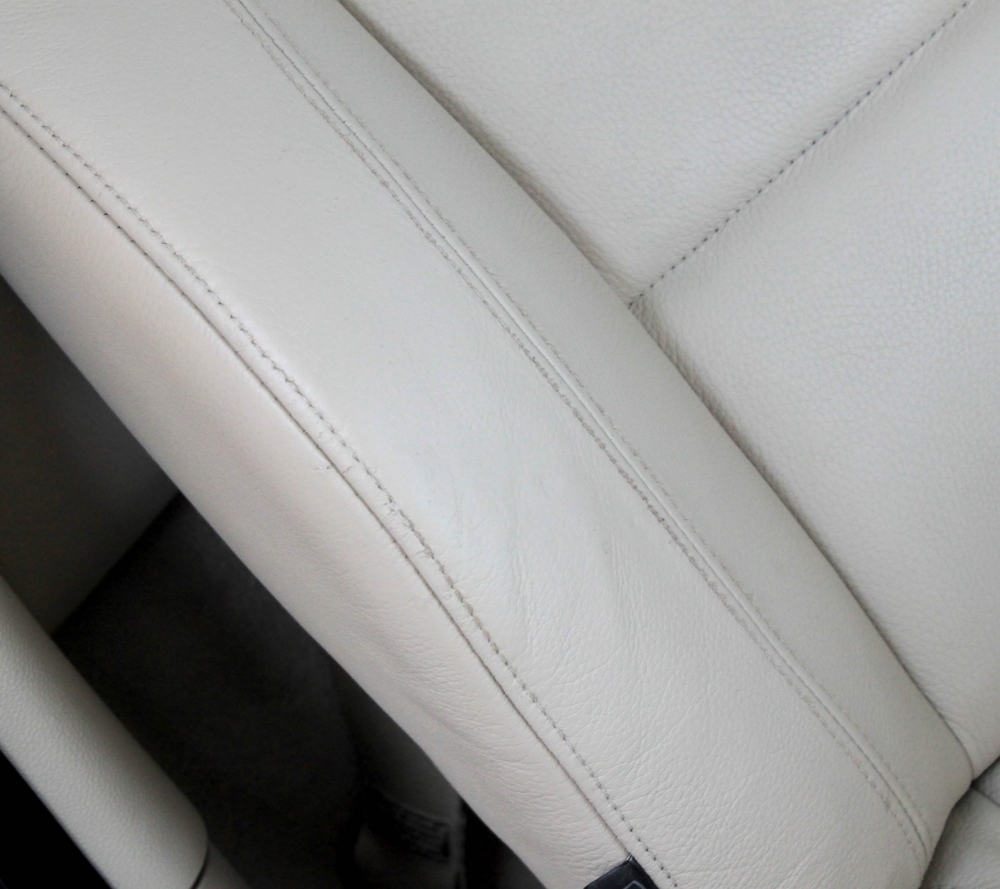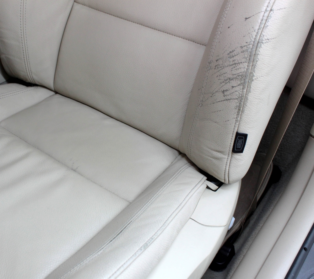 Светлый кожаный салон LexusLX 570. На сиденьях въевшаяся синева джинсов, на рукоятках характерные потертости на швах. Через несколько минут работы специалиста поверхность кожи становится первозданной. Такому эффекту позавидует любой пластический хирург! ![]() |